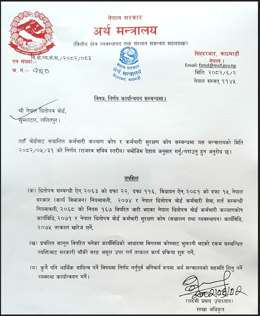 यता कर्मचारीले अख्तियारले निर्देशन दिएको भन्ने कुरा पत्याएका छैनन्। यस अघि कसैको निर्देशन अनुसार निर्देशन दिँदा अर्थले उक्त निर्देशनको समेत प्रतिलिपि पठाउने परम्परा रहेकोमा यसपटक त्यस्तो कुनै प्रतिलिपि पठाएको अवस्था छैन। अर्कोतर्फ कर्मचारीले अख्तियारको निर्देशन माग गर्दा समेत अर्थले उपलब्ध नगराएको कारण कर्मचारीले अख्तियारको निर्देशन नै नभएको भनिरहेका छन्। “हामीले अख्तियारको निर्देशन हेर्न माग गर्यौ। तर हामीलाई उपलब्ध गराइएन। अख्तियारले निर्देशन नै नदिएको विषय अघि सारिएको छ। यो सरासर कर्मचारीमाथि गरिएको अन्याय नै हो ” सेबोन कर्मचारी युनियनका अध्यक्ष अजय ढुङ्गानाले मेरो लगानीसँग भने।