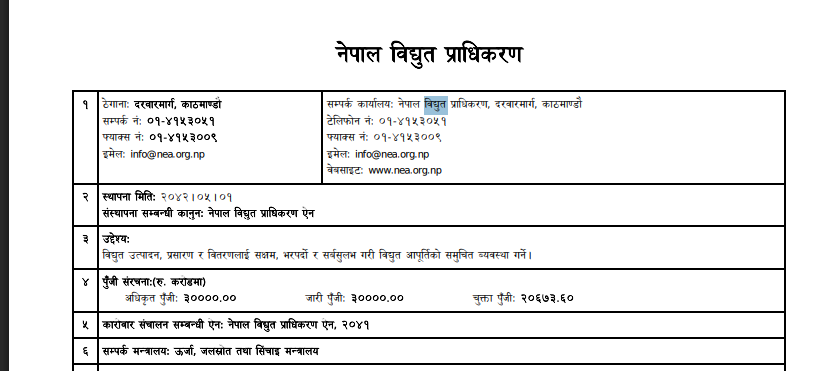 प्राधिकरण सरकारको पूर्ण स्वामित्वमा रहेको, विद्युत् प्रसारण, वितरण र देशभित्र तथा बाहिरी देशसँग विद्युत् खरिद र बिक्रीको एकाधिकार प्राप्त तथा सरकारको रणनीतिक संस्था हो।