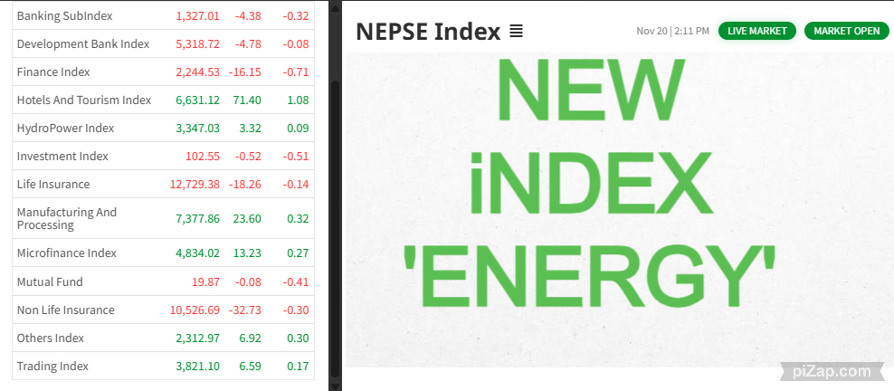 तर पछिल्लो समय सूचीकृत दुई कम्पनीलाई भने नेप्सेले अन्य समूहमा राखेको छ। जसले अन्य समूहको सूचकमा नै फरक पर्न थालेको विश्लेषण विज्ञहरूले गरिरहेका छन्। खासगरि पछिल्लो समय दोस्रो बजारमा सूचीकृत पियोर ‘इनर्जी’ र झापा ‘इनर्जी’लाई अन्य समूहमा राखेका कारण उक्त समूहको ‘वेटेज’ नै फरक पर्न थालेको बताइएको छ। ती दुई कम्पनी ‘इनर्जी’(ऊर्जा) सँग सम्बन्धित रहेकाले उनीहरूलाई जलविद्युत क्षेत्रमा समायोजन गर्नु पर्ने वा ‘इनर्जी’ सेक्टर भनेर छुट्टै ‘इन्डेक्स’ बनाउनु पर्ने विज्ञहरूको भनाइ छ। किनकि ऊर्जा क्षेत्रसँग सम्बन्धित अरू पनि कम्पनी पाइपलाईनमा रहेकाले आउने दिनमा थप कम्पनीहरू बढ्ने भएकोले त्यसको लागि ऊर्जाको छुट्टै ‘इन्डेक्स’ बनाउन सकिने वा जलविद्युत कम्पनीहरूले पनि ऊर्जा नै उत्पादन गर्ने भएकोले ऊर्जा सँग सम्बन्धित सबै कम्पनीहरूलाई एकै डालोमा राखेर जलविद्युतको सट्टा ऊर्जा नै नामकरण गर्नु पर्ने विज्ञको राय हो।