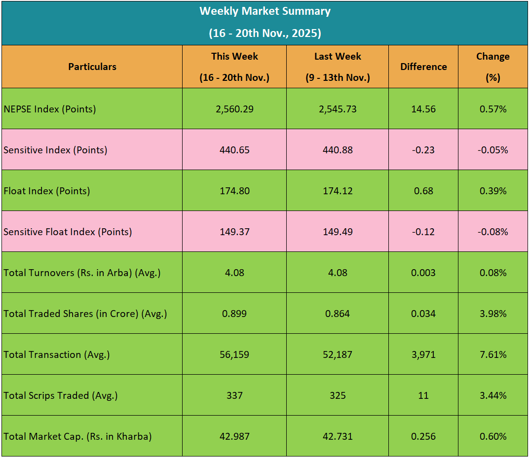 यस साता ५ कारोबार दिनका लागि बजार खुलेको थियो। जसमध्ये ३ कारोबार दिन नेप्से बढेको थियो भने २ कारोबार दिन घटेर बन्द भएको थियो।