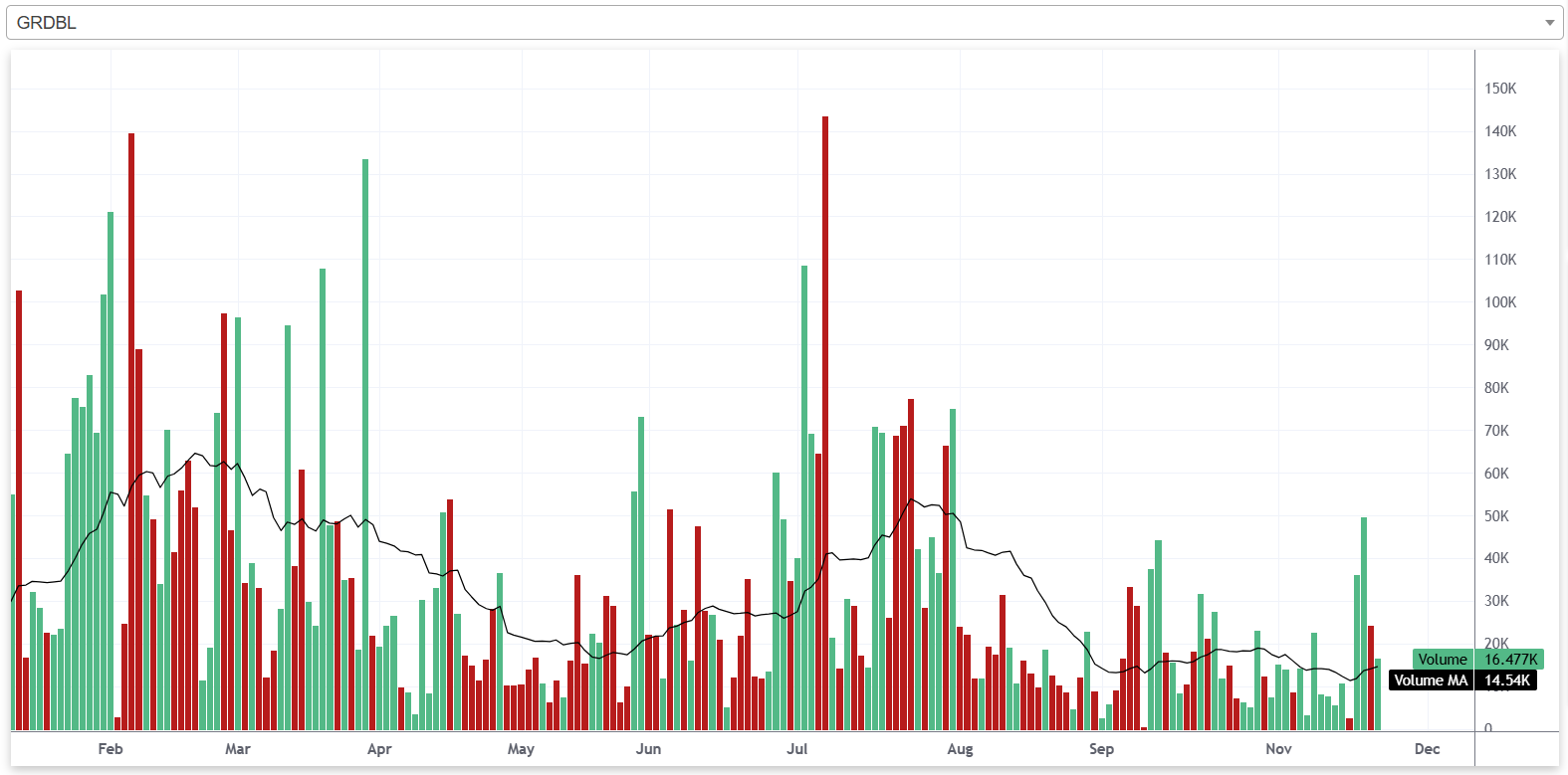 यस साता बैंकको भोल्यम पनि बलियो रहेको छ। यस साता बैंकको दैनिक औषत भोल्युम २५ हजार ७१२ कित्ता रहेको छ। साताको अन्तिम कारोबार दिन बैंकको २० दिने औषत भोल्यूम भने १४ हजार ५४० कित्ता रहेको छ। २० दिने औषत भोल्यूमको तुलनामा यस साताको दैनिक औषत भोल्यूम ७६.८३ प्रतिशत बढी हो।