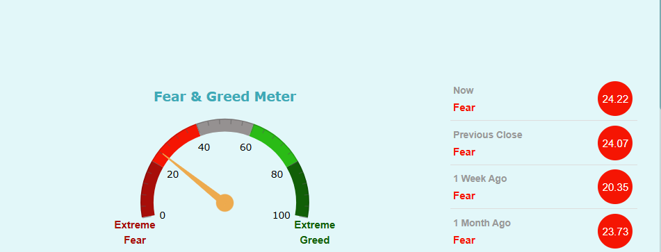 फियर एण्ड ग्रीड मिटरमा बैंक अहिले फियर जोनमा रहेको छ। यसले लगानीकर्ताहरुमाझ बैंकको शेयरमूल्य घट्छ भन्ने डर रहेको संकेत गर्दछ।