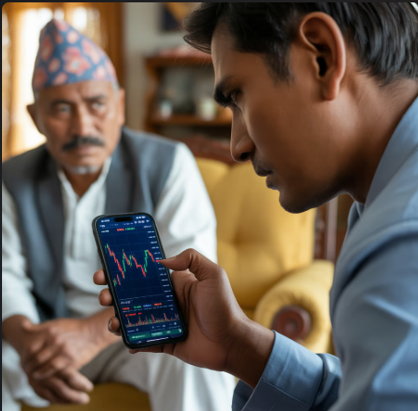 ६५ वर्षीय सुवेदी बाजे (नाम परिवर्तन) चस्मा मिलाउँदै जग्गाको लालपुर्जा र बैंकको मुद्दती निक्षेपको रसिद सुमसुम्याउँदै हुनुहुन्छ। त्यहीँ सँगै बसेका उनका २५ वर्षीय नाति भने हातमा मोबाइल बोकेर नेप्सेको ग्राफ हेर्दै कहिले मुस्कुराउँछन् त कहिले टोलाउँछन्।