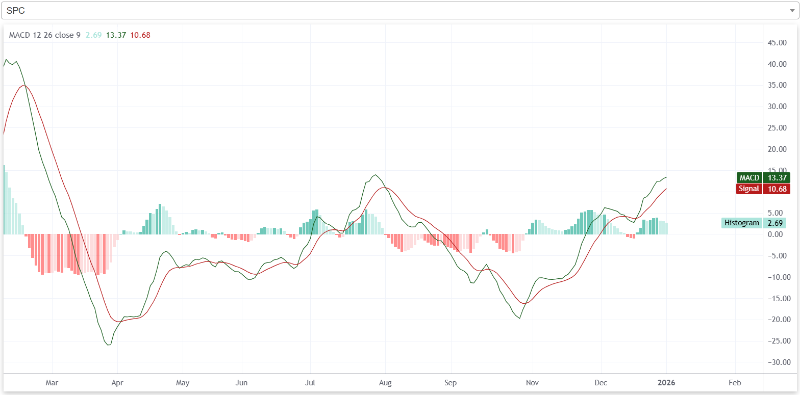 प्राविधिक विश्लेषणको उपकरण एमएसिडीमा कम्पनीको एमएसिडी रेखा सिग्नल रेखाका साथै शून्य रेखाभन्दा माथि रहेको छ। त्यस्तै, कम्पनीको हिस्टोग्राम पनि यस साता सकारात्मक क्षेत्रमा रहेको छ। यसले बजारमा कम्पनीको शेयर बुलिश प्रवृत्तिमा रहेको संकेत गर्दछ। यद्यपि, कम्पनीको हिस्टोग्रामको उचाई घट्दो क्रममा रहेको छ।