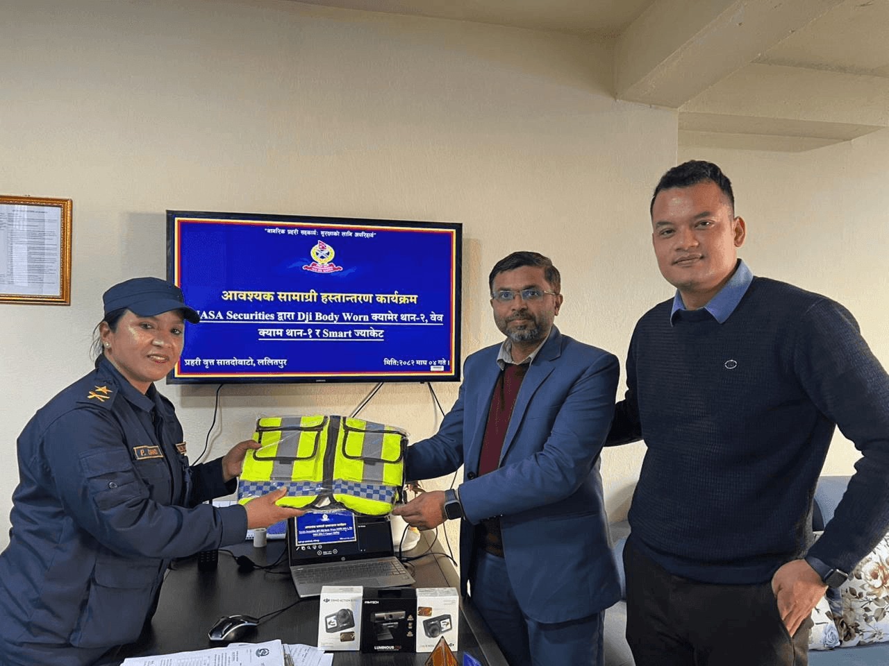 आन्दोलनका क्रममा सातदोबाटो प्रहरी वृत्तमा भएको क्षतिप्रति ऐक्यबद्धता जनाउँदै नासा सेक्युरिटीजले १०० थान फ्लोरोसेन्ट ज्याकेट, २ थान बडी–वर्न क्यामेरा तथा १ थान वेब क्यामेरा सहयोगस्वरूप प्रदान गरेको हो।