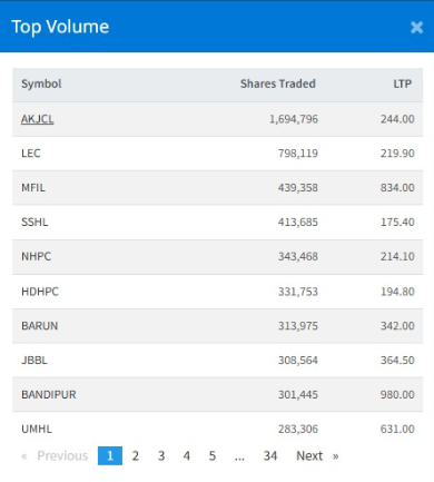 साताको अन्तिम दिन बिहीबार नेप्से परिसूचक ९.२३ अंक बढेर २७१४.६१ विन्दुमा पुग्यो। त्यस्तै, बिहीबार ९ अर्ब ७ करोड ३९ लाख ७८ हजार रुपैयाँ बराबरको १ करोड ९० लाख ७५ हजार कित्ता शेयर खरिदबिक्री भए। जसमा सबैभन्दा बढी कित्ता शेयर साना कम्पनीका भएका छन्। यस दिन सबैभन्दा बढी कित्ता शेयर आँखुखोला जलविद्युत कम्पनीको भयो। जसको मूल्य बढेर २४४ रुपैयाँ पुगेको छ। त्यस्तै दोस्रोमा लिबर्टी इनर्जी छ। जसको मूल्य २१९.९० छ। दोस्रो बजारमा उकालो लाग्दै गरेका सस्ता कम्पनीहरूको मूल्यले बजारमा नयाँ तरङ्ग पैदा गरिरहेका छन्।
