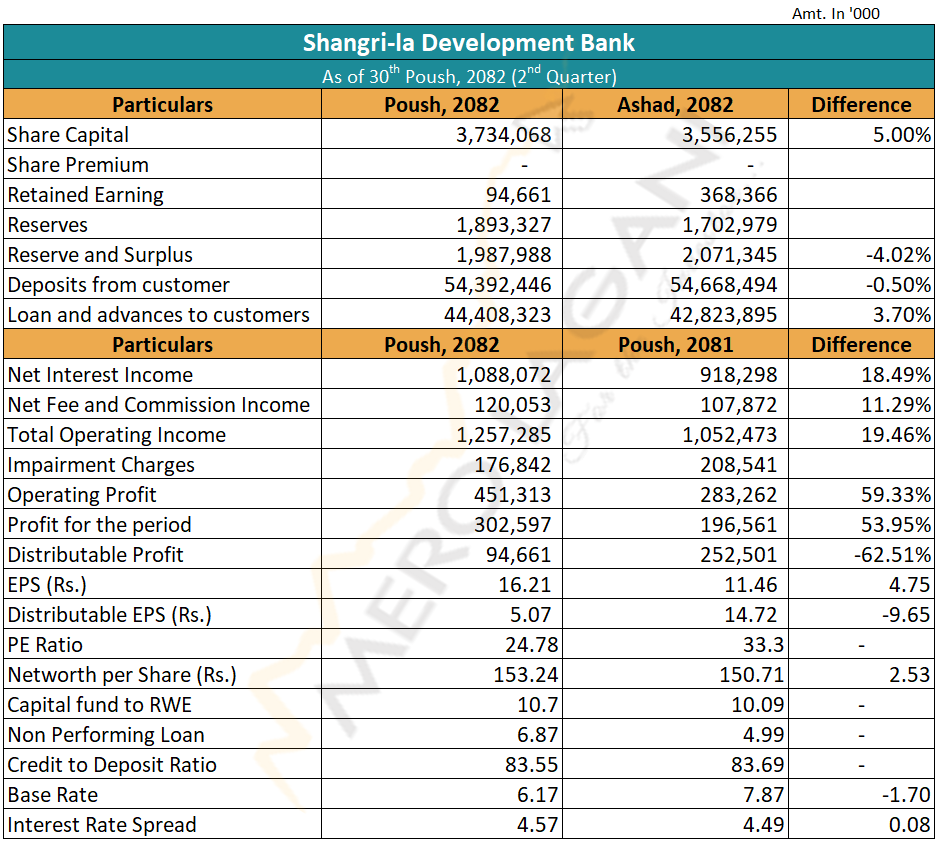 समीक्षा अवधिमा बैंकको खुद ब्याज आम्दानी १८.४९ प्रतिशत र खुद फि तथा कमिशन आम्दानी ११.२९ प्रतिशत बढेको छ। त्यसैगरी, समीक्षा अवधिमा बैंकको कुल सञ्चालन आम्दानी १९.४६ प्रतिशत र सञ्चालन मुनाफा ५९.३३ प्रतिशत बढेको छ। समीक्षा अवधिमा कम्पनीको इम्पेरमेन्ट चार्ज २० करोड ८५ लाख रुपैयाँबाट घटेर १७ करोड ६८ लाख रुपैयाँमा झरेको छ।