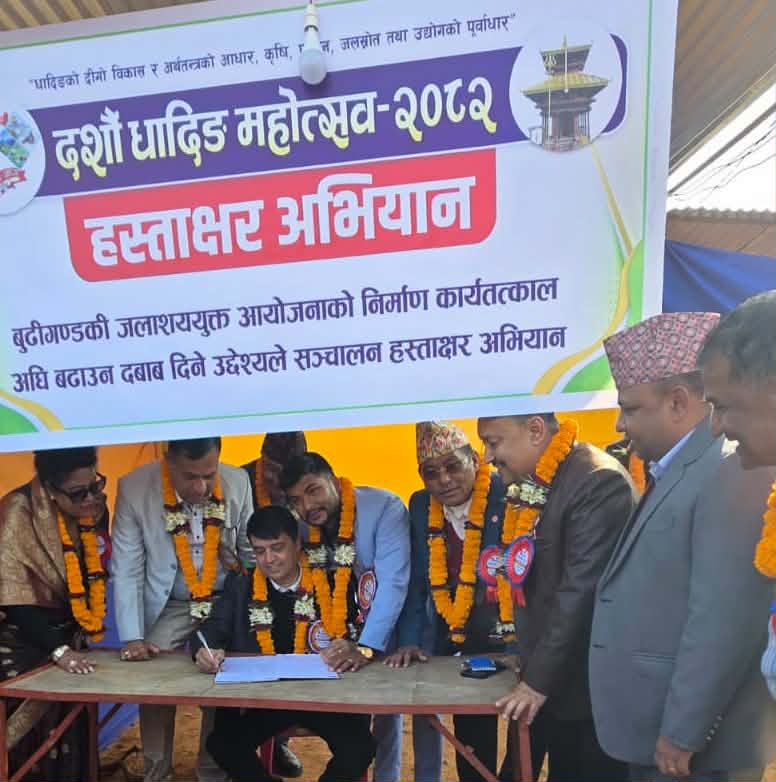 साथै उनले सो अवसरमा बुढीगण्डकी जलाशययुक्त जलविद्युत आयोजनाको निर्माण तत्काल अघि बढाउन दबाब दिने उदेश्यले सञ्चालन गरिएको हस्ताक्षर अभियानमा हस्ताक्षर समेत गरे । नेपालभरका उद्यमी, व्यवसायी तथा लगानीकर्ताहरुको लगानीमा नेपाल डेभलपमेन्ट पब्लिक लिमिटेड (एनडीपी) कम्पनी स्थापना गरिएको र यस आयोजनामा स्रोतको कमी भएको भए निजी क्षेत्रको तर्फबाट यस कम्पनीमार्फत लगानी गर्न आफूहरु तयार रहेको समेत अध्यक्ष ढकालले बताए ।“ नेपालमा जलविद्युत विकासको अपार सम्भावना रहेको छ । जलविद्युतको विकाससँगै यहाँका खनिज, कृषि उत्पादन तथा अन्य व्यवसायको सम्भावनालाई पनि थप उजागर गर्न सहयोग पुग्ने छ । आवश्यक परेमा हामी सहयोग गर्न तयार छौं । ” उनले भने ।