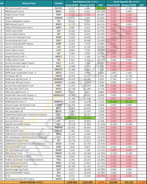 यसरी बैंकबाट बाहिरिएको रकम सिधै शेयर बजारमा भित्रिएको तथ्याङ्कले देखाउँछ। म्युचुअल फण्डहरूले पुस महिनामा सूचीकृत शेयरमा आफ्नो लगानी ५.७१ प्रतिशतले बढाएका छन्। मङ्सिर मसान्तमा सूचीकृत शेयरमा ५,२७९.०५ करोड रुपैयाँ लगानी रहेकोमा पुस मसान्तसम्म यो रकम बढेर ५,५८०.३४९ करोड रुपैयाँ पुगेको छ। यसले बजारमा 'स्मार्ट मनी' को रूपमा चिनिने म्युचुअल फण्डहरूले आगामी दिनमा बजार बढ्ने अपेक्षाका साथ आक्रामक रूपमा शेयर खरिद गरिरहेको पुष्टि गर्दछ। सूचीकृत नभएका शेयरमा पनि फण्डहरूको लगानीमा ३३.७५ प्रतिशतको भारी वृद्धि देखिएको छ।