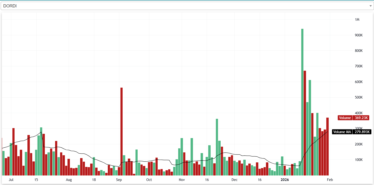 यस साता कम्पनीको शेयरमूल्य घटेपनि भोल्यूम भने बलियो रहेको छ। यस साता कम्पनीको दैनिक औषतमा ३ लाख २९ हजार ९७२ कित्ता शेयर कारोबार भएको छ। साताको अन्तिम कारोबार दिन कम्पनीको २० दिने औषत भोल्यूम २ लाख ७९ हजार ८९३ कित्ता रहेको छ। २० दिने औषत भोल्यूमको तुलनामा यस साताको दैनिक औषत भोल्यूम १७.८० प्रतिशत बढी हो।