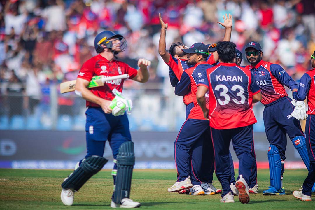 आइतबार भएको खेलमा नेपाल बेलायतसँग ४ रनले पराजित भएको हो । वानखाडे क्रिकेट स्टेडियममा बेलायतले दिएको १८५ रनको लक्ष्य पछ्याएको नेपालले निर्धारित २० ओभरमा ६ विकेट गुमाउँदै १८० रन बनाएको हो । नेपालका लागि दीपेन्द्र सिंह ऐरीले सर्वाधिक ४४ रन, लोकेश बम र कप्तान रोहित पौडेलले समान ३९–३९ रन बनाए ।
