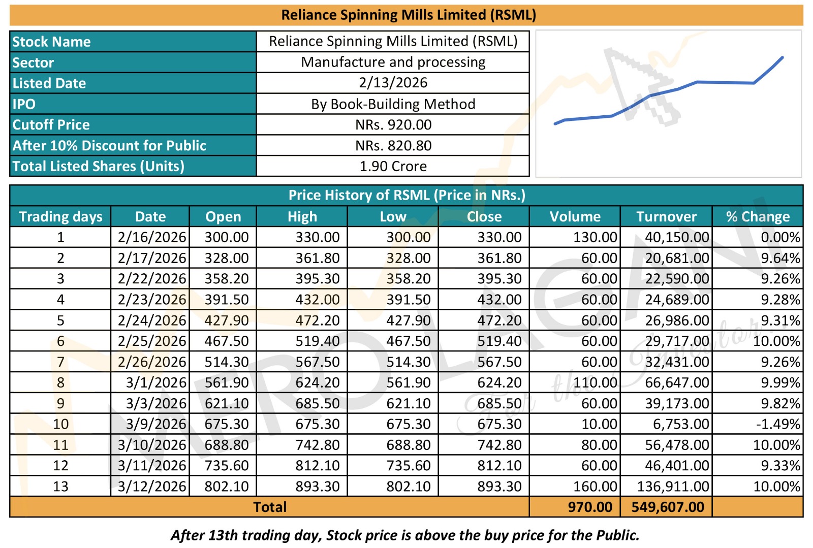 आज १३ औँ दिन (फागुन २९) : ८९३.३० रुपैयाँ (बल्ल नाफा सुरु)