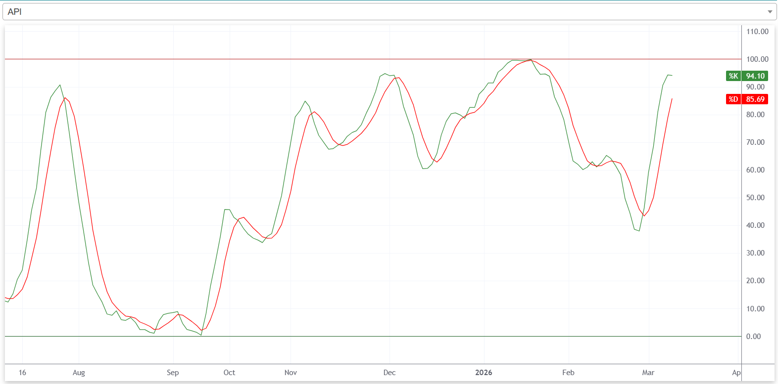 यस साता स्टकास्टिक आरएसआईमा कम्पनी ओभरबट जोनमा रहेको छ। यसले यस साता कम्पनीको शेयर बिक्रीचापको तुलनामा खरिदचाप बढी रहेको संकेत गर्दछ।