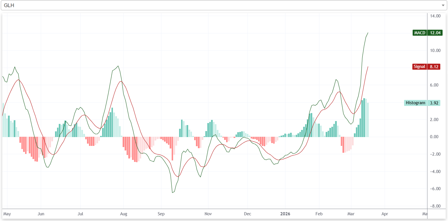 यस साता कम्पनीको शेयरमूल्य बुलिश प्रवृत्तिमा रहेको छ। कम्पनीको एमएसिडी रेखा सिग्नल रेखाभन्दा माथि रहेको छ र यी दुई रेखाबीचको दूरी फराकिलो रहेको छ। त्यसैगरी, कम्पनीको हिस्टोग्राम, एमएसिडी रेखा र सिग्नल रेखा सबै शून्य रेखाभन्दा माथि रहेका छन्। यद्यपि, साताको अन्त्यतिर कम्पनीको शेयरमूल्य घट्दा हिस्टोग्रामको उचाई भने घटेको छ।