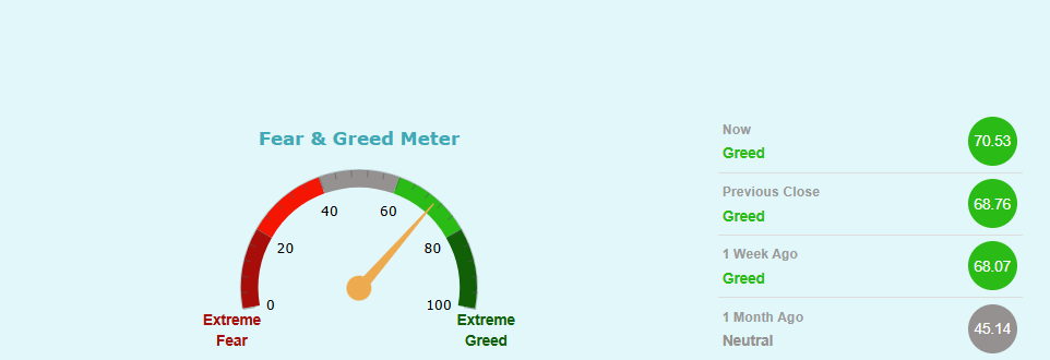 फियर एण्ड ग्रीड मिटरमा कम्पनीको शेयरमूल्य अहिले ग्रीड जोनमा रहेको छ। यसले लगानीकर्ताहरु कम्पनीको शेयरमूल्य बढ्छ भन्ने अपेक्षामा रहेको संकेत गर्दछ।