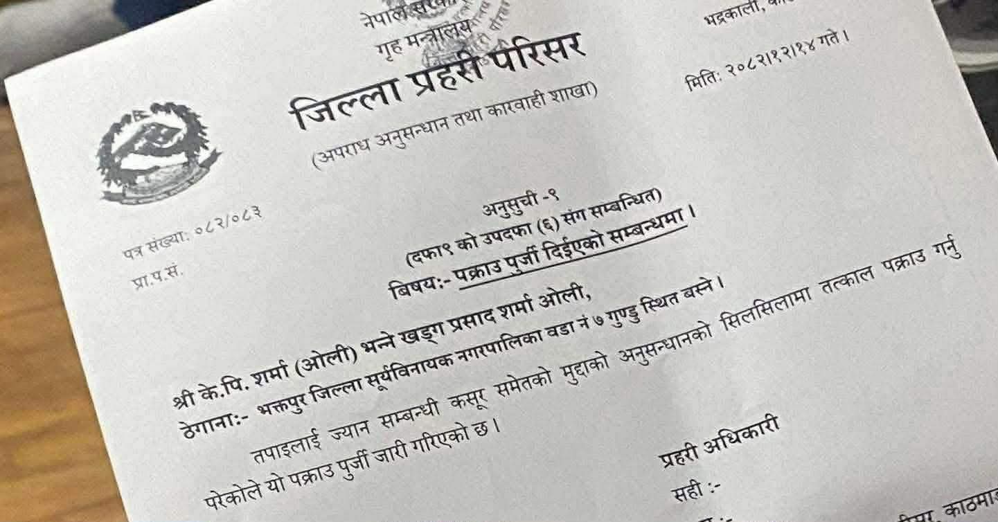 यस्तो छ ओलीको पक्राउ पुर्जी।