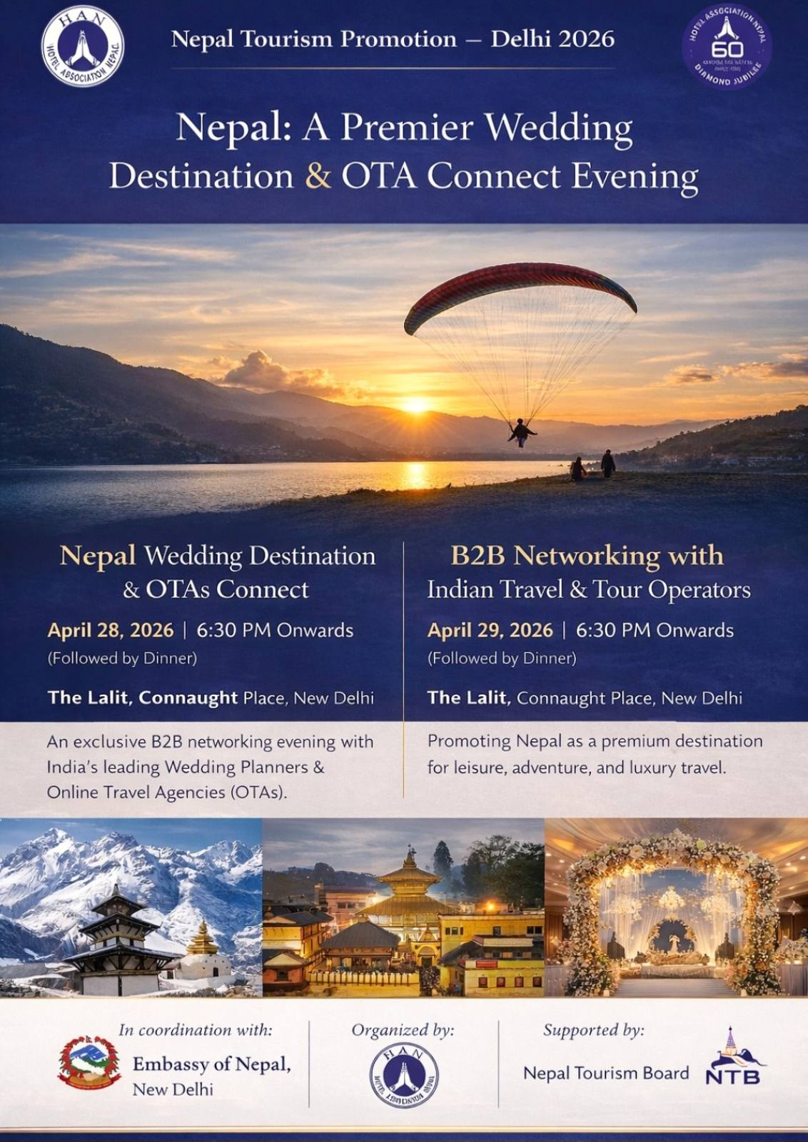 अप्रिल २८ र २९, २०२६ (बैशाख १५–१६, २०८३) मा दुई दिनसम्म सञ्चालन हुने कार्यक्रममा देशभरका एक सयभन्दा बढी सदस्य होटलहरूको सहभागिता रहनेछ। नेपाली दूतावास, नयाँ दिल्लीको सहकार्य तथा नेपाल पर्यटन बोर्डको सहयोगमा आयोजना हुने यस कार्यक्रमलाई विवाह पर्यटन (डेस्टिनेसन वेडिङ) प्रवद्र्धनमा विशेष प्राथमिकता दिइएको छ।
