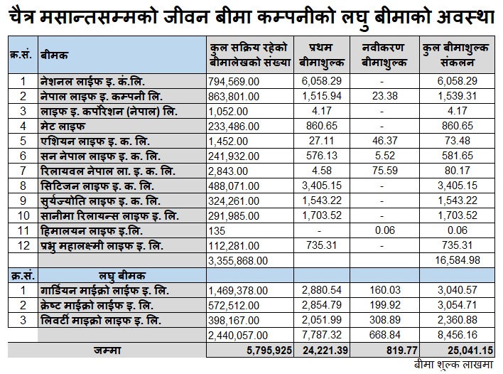 तथ्यांकलाई अझ सुक्ष्म ढंगले विश्लेषण गर्दा एउटा रोचक पक्ष के देखिन्छ भने, लघु बीमा व्यवसायमा नयाँ खुलेका तीनवटा लघु बीमा कम्पनीहरू मात्र होइन, पुराना र स्थापित ठूला जीवन बीमा कम्पनीहरूले पनि ‘लघु जीवन बीमा’ पोर्टफोलियो अन्तर्गत व्यवसाय गरिरहेका छन्।