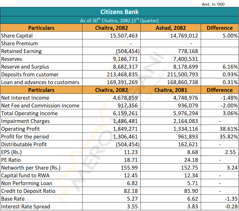 इम्पेरमेन्ट चार्ज घट्दा सिटिजन्स बैंकको नाफा बढ्यो, वितरणयोग्य मुनाफा भने ऋणात्मक