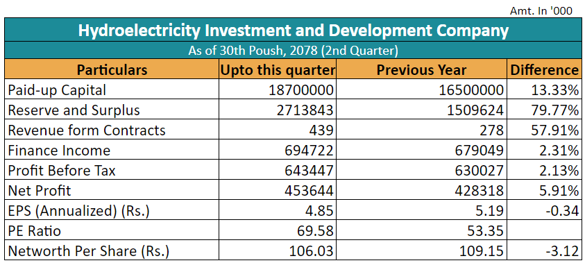 समीक्षा अवधिमा कम्पनीको ग्राहक सम्झौताबाट भएको आम्दानी ५७.९१ प्रतिशत बढेको छ भने वित्तीय आम्दानी २.१३ प्रतिशत बढेको छ। त्यसैगरी, कम्पनीको करअघिको नाफा भने समीक्षा अवधिमा २.१३ प्रतिशत बढेको छ। कम्पनीले सर्वसाधारण शेयर लिलामीबाट शेयर प्रिमियमबापत ५० कराेड ४० लाख रूपैयाँ रकम संकलन गरेकाे छ। त्यसैगरी, कम्पनीले संस्थापक समूहकाे ३ अर्ब ३० कराेड बराबरकाे अवितरित हकप्रद शेयरकाे लिलामी बढाबढ प्रकृया मार्फत बिक्री गर्दैछ।