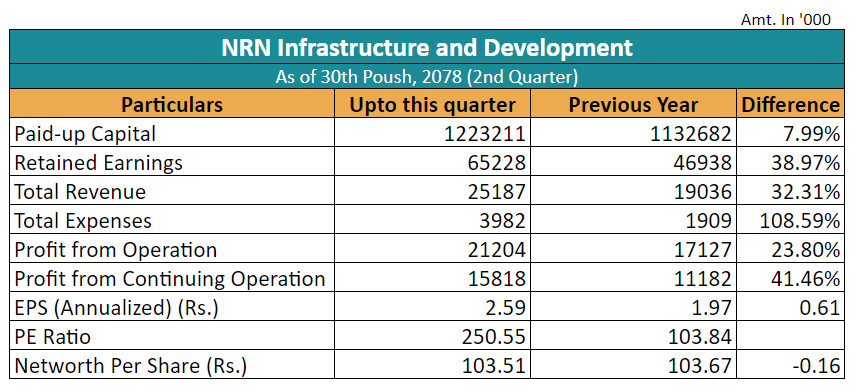 चालु आर्थिक वर्षको पुस मसान्तसम्ममा कम्पनीले १ करोड ५८ लाख १८ हजार रुपैयाँ खुद नाफा आर्जन गरेको छ। यो गत आर्थिक वर्षको सोही अवधिको तुलनामा ४१.४६ प्रतिशत बढी हो। गत आर्थिक वर्षको सोही अवधिसम्ममा कम्पनीले १ करोड ११ लाख ८२ हजार रुपैयाँ खुद नाफा आर्जन गरेको थियो।