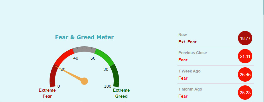 फियर एण्ड ग्रीड मिटरमा कम्पनी अहिले एक्सट्रीम फियर जोनमा रहेको छ। यसले लगानीकर्ताहरु कम्पनीको शेयरमूल्य अझै घट्छ भन्ने डरमा रहेको संकेत गर्दछ।