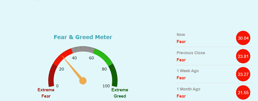 फियर एण्ड ग्रीड मिटरमा कम्पनी अहिले फियर जोनमा रहेको छ। यसले लगानीकर्ताहरुमाझ कम्पनीको शेयरमूल्य घट्छ भन्ने डर रहेको संकेत गर्दछ। यद्यपि, यो अघिल्ला दिनहरुमा भन्दा केही कम भएको मिटरमा देखिएको छ।