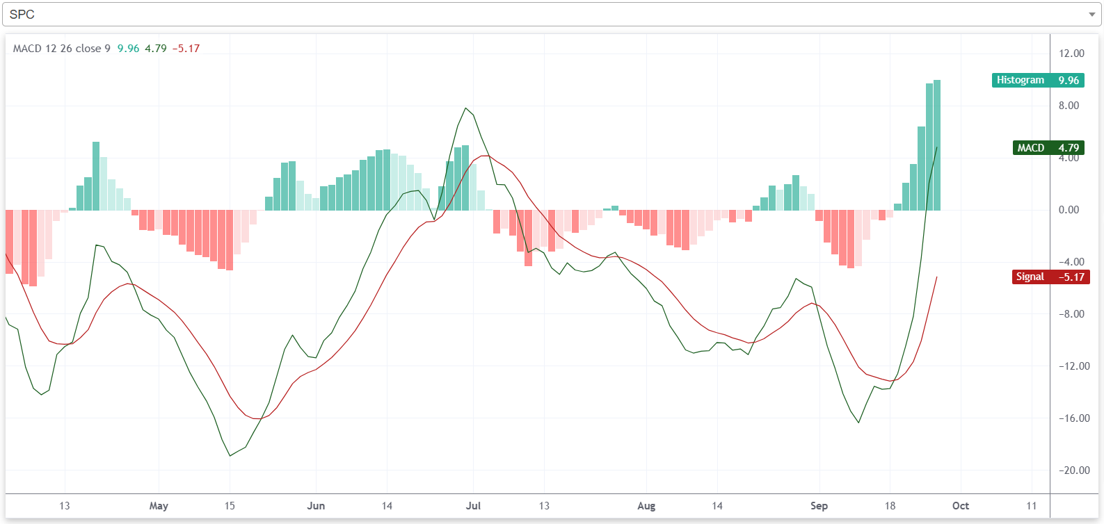 प्राविधिक विश्लेषणको उपकरण एमएसिडीमा कम्पनीको एमएसिडी रेखा सिग्नल रेखाका साथै शून्य रेखाभन्दा माथि रहेको छ। त्यस्तै, कम्पनीको हिस्टोग्राम पनि यस साता सकारात्मक क्षेत्रमा रहेको छ। यसले बजारमा कम्पनीको शेयर बुलिश प्रवृत्तिमा रहेको संकेत गर्दछ।