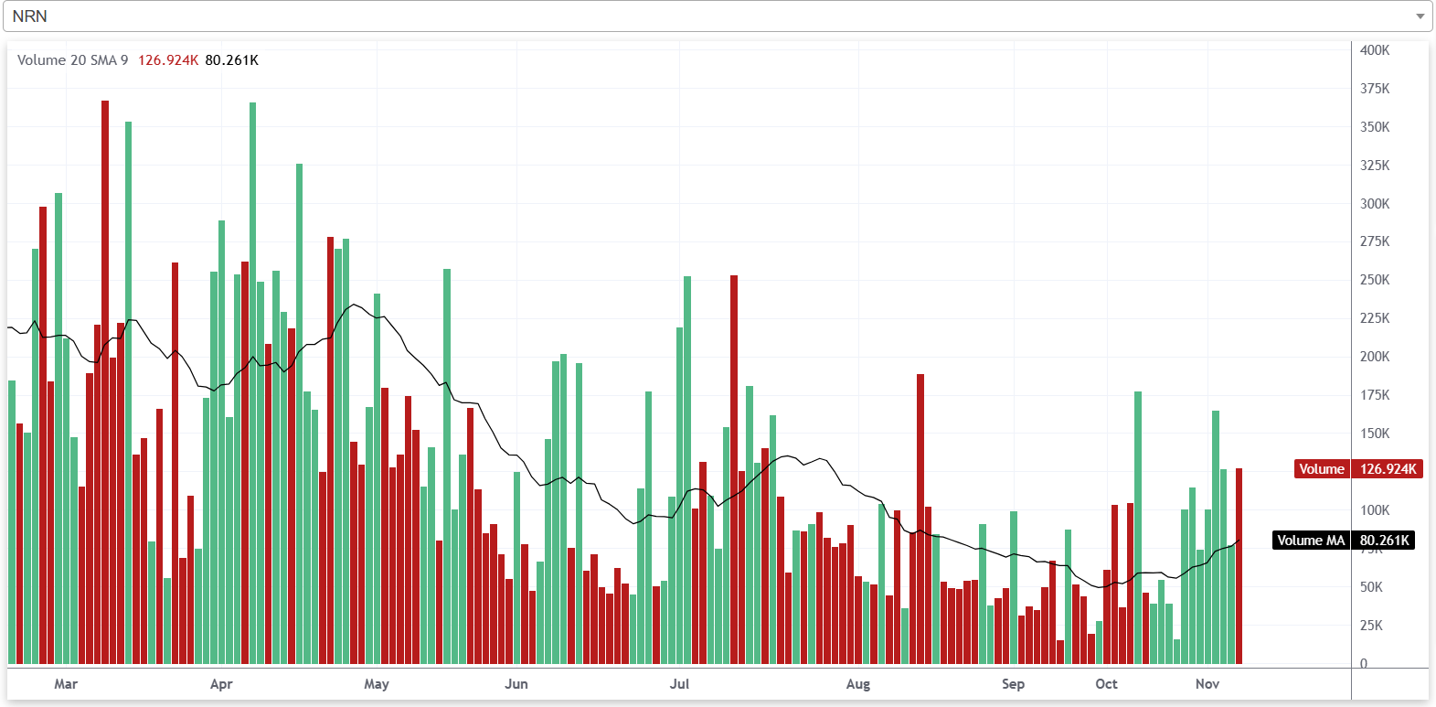 यस साता कम्पनीको भोल्यूम पनि बलियो रहेको छ। यस साता कम्पनीको दैनिक औषतमा १ लाख १८ हजार ९७६ कित्ता शेयर कारोबार भएको छ। साताको अन्तिम कारोबार दिन कम्पनीको २० दिने औषत भोल्यूम ८० हजार २१६ कित्ता रहेको छ। गत साताको दैनिक औषत भोल्यूम, २० दिने औषत भोल्यूमको तुलनामा ४८.२३ प्रतिशत बढी हो।