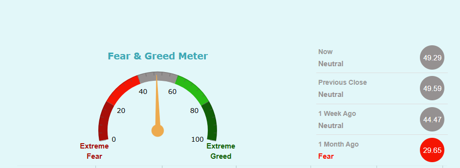 फियर एण्ड ग्रीड मिटरमा कम्पनीको शेयरमूल्य अहिले न्यूट्रल जोनमा रहेको छ।