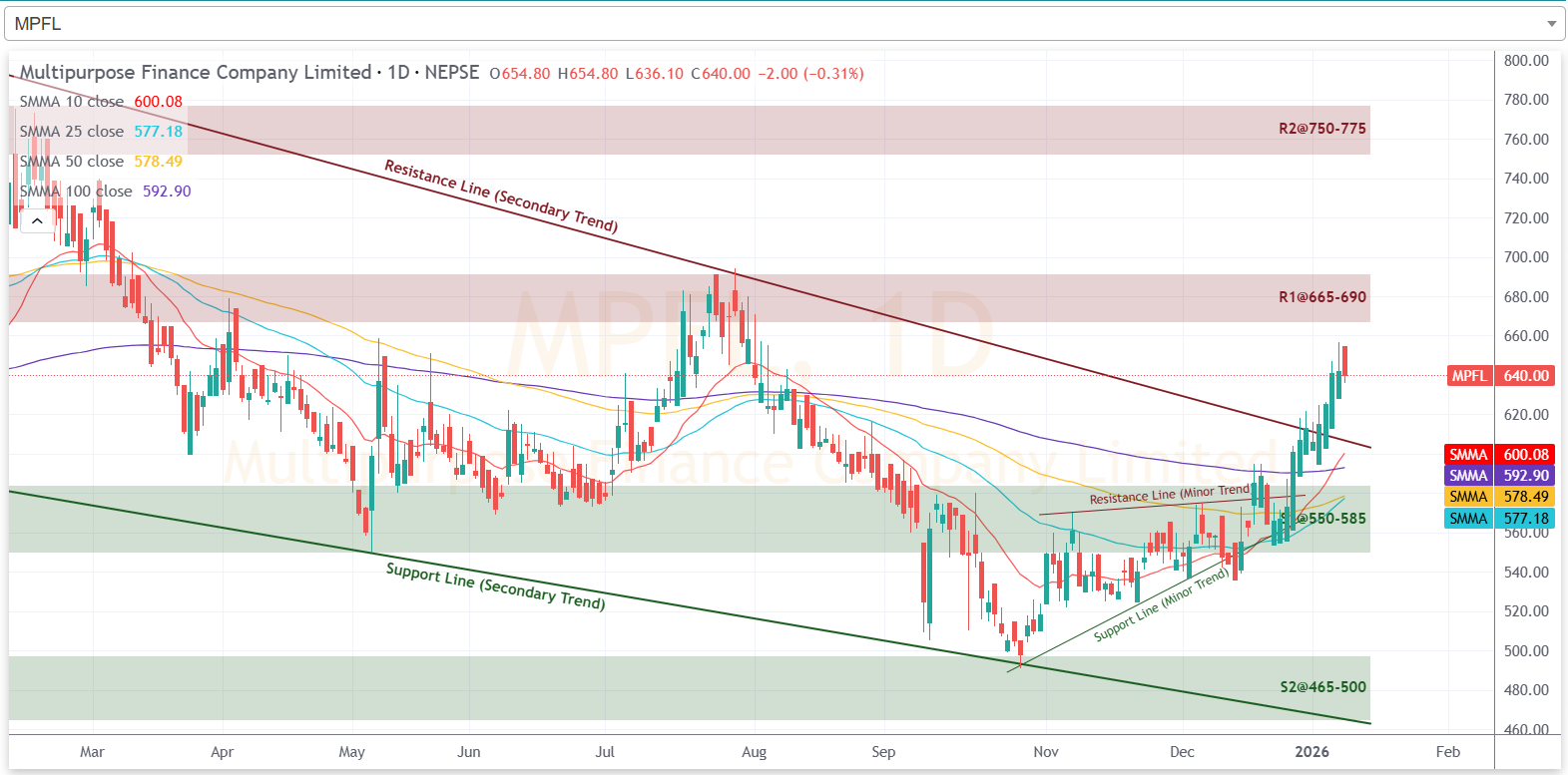 (प्राविधिक विश्लेषणमा प्रयोग गरिएका चित्रहरु मेरोलगानी एआई चार्टबाट लिइएको हो भने आधारभूत विश्लेषणमा प्रयोग भएका चित्रहरु मेरोलगानी डाटा एनालाइटिक्सबाट लिइएको हो।)