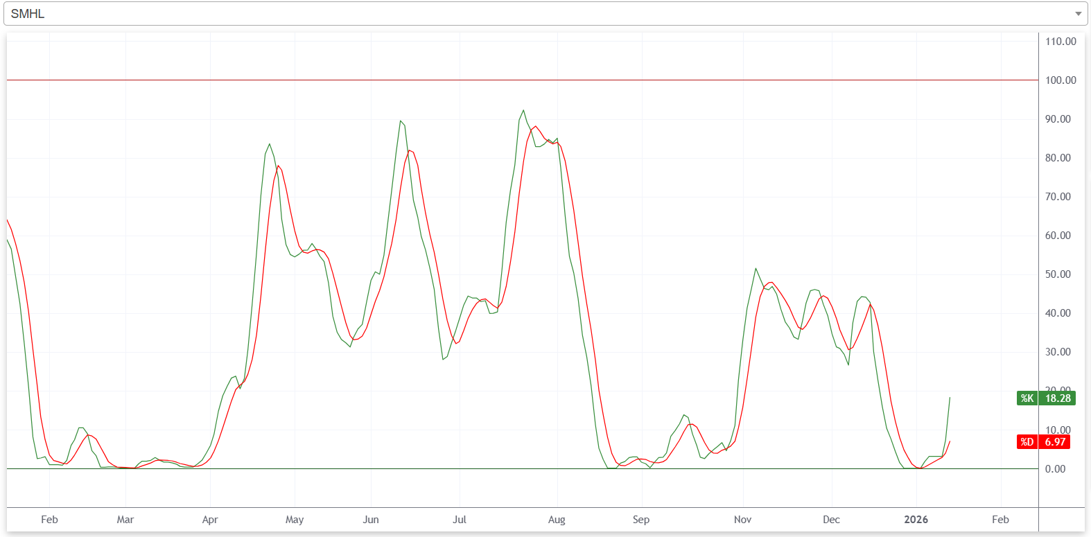 साताको अन्तिम कारोबार दिन कम्पनीको स्टकास्टिक आरएसआई ओभरसोल्ड जोनमा रहेको छ। यसले बजारमा कम्पनीको शेयरमा खरिदचापको तुलनामा बिक्रीचाप बढी रहेको संकेत गर्दछ।