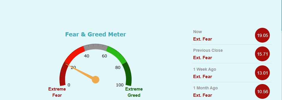 यस साता फियर एण्ड ग्रीड मिटरमा कम्पनीको शेयर एक्ट्रिम फियर जोनबाट फियर जोनतर्फ बढिरहेको छ। यसले लगानीकर्ताहरुमाझ कम्पनीको शेयरमूल्य घट्छ भन्ने डर केही कम भएको संकेत गर्दछ।