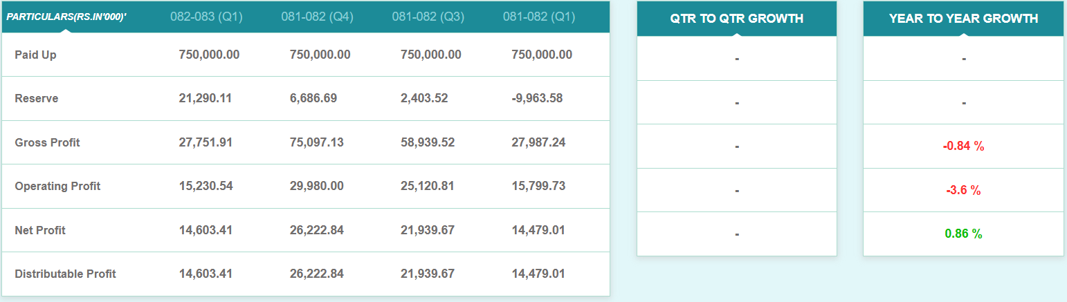 ७५ करोड रुपैयाँ चुक्ता पूँजी रहेको यस कम्पनीको जगेडा कोषमा २ करोड १२ लाख रुपैयाँ सञ्चित छ।