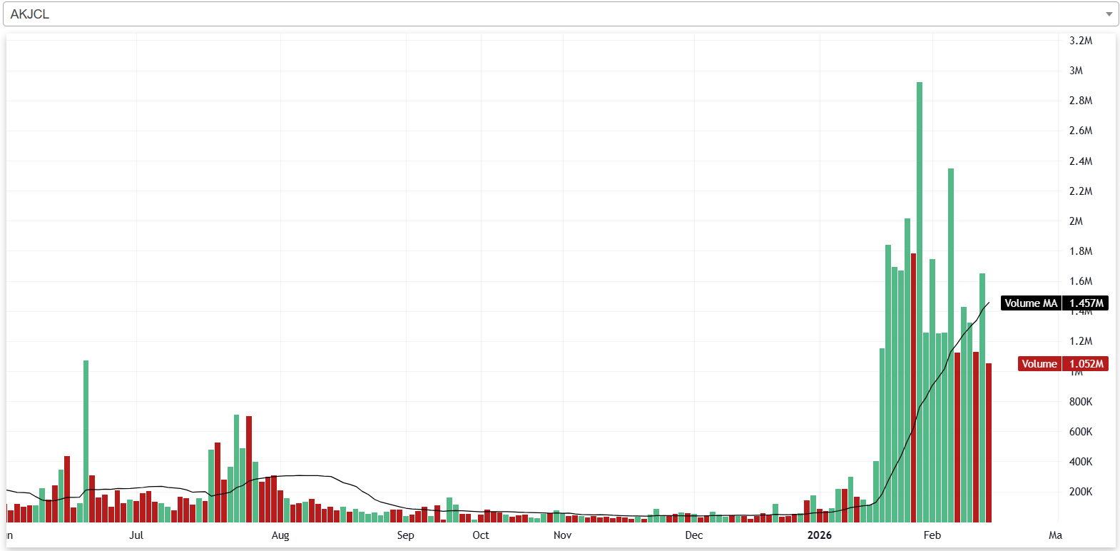 यस साता कम्पनीको भोल्यूम कमजोर रहेको छ। यस साता दैनिक औषतमा कम्पनीको १३ लाख १५ हजार कित्ता शेयर खरिदबिक्री भएको छ। साताको अन्तिम कारोबार दिन कम्पनीको २० दिने औषत भोल्यूम १४ लाख ५७ हजार रहेको छ। २० दिने औषत भोल्यूमको तुलनामा गत साताको दैनिक औषत भोल्यूम ९.७४ प्रतिशत कम हो।