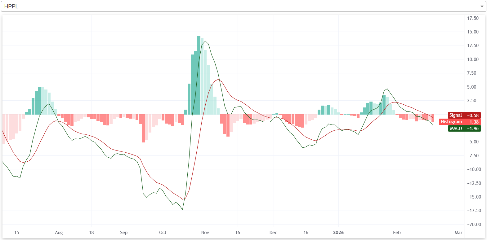 यस साता कम्पनीको शेयरमूल्य बियरिश प्रवृत्तिमा रहेको छ। कम्पनीको एमएसिडी रेखा, सिग्नल रेखाभन्दा तल रहेको छ भने यी दुबै रेखा र हिस्टोग्राम नकारात्मक क्षेत्रमा रहेका छन्। एमएसिडी रेखा र सिग्नल रेखा बीचको दूरी पनि बढ्दो क्रममा रहेको छ।