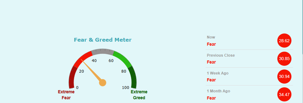यस साता फियर एण्ड ग्रीड मिटरमा कम्पनीको शेयर फियर जोनमा रहेको छ। यसले लगानीकर्ताहरु कम्पनीको शेयरमूल्य घट्छ भन्ने डरमा रहेको संकेत गर्दछ।