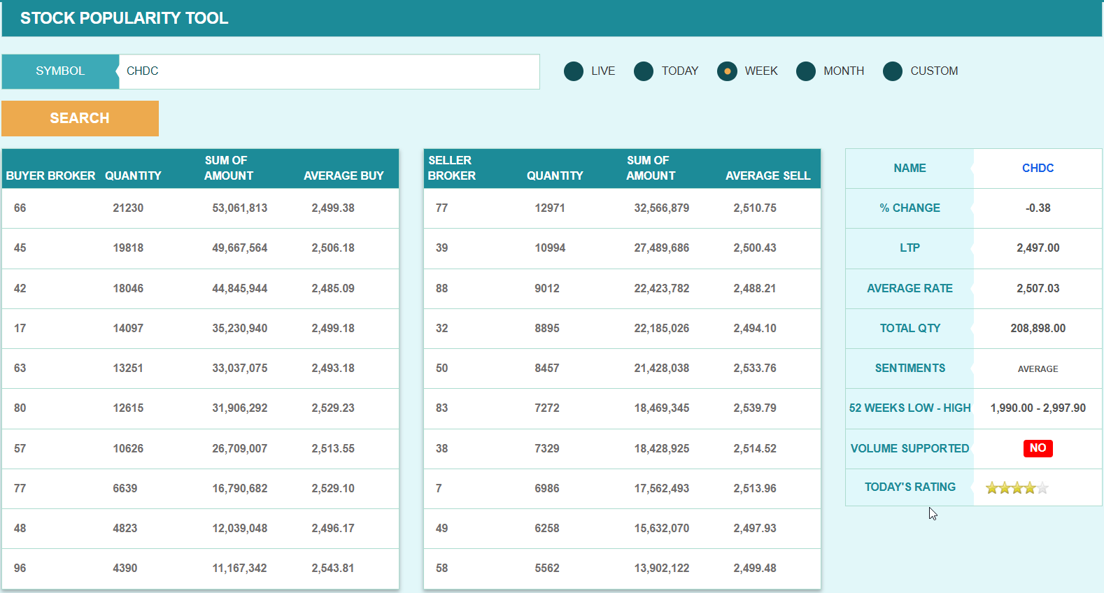 यस साता ब्रोकर नम्बर ६६ ले कम्पनीको सबैभन्दा बढी शेयर खरिद गरेको छ। यस साता सो ब्रोकरले कम्पनीको २१ हजार २३० कित्ता शेयर खरिद गरेको छ। त्यस्तै, यस साता ब्रोकर नम्बर ७७ ले कम्पनीको सबैभन्दा बढी १२ हजार ९७१ कित्ता शेयर बिक्री गरेको छ।