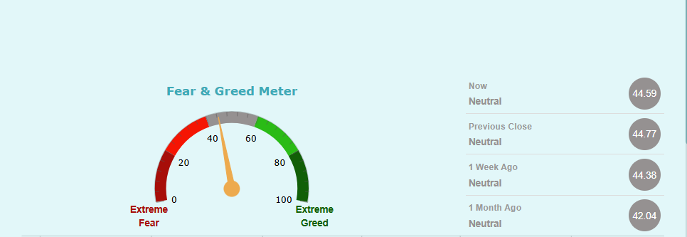 फियर एण्ड ग्रीड मिटरमा कम्पनीको शेयरमूल्य अहिले न्यूट्रल जोनमा रहेको छ।