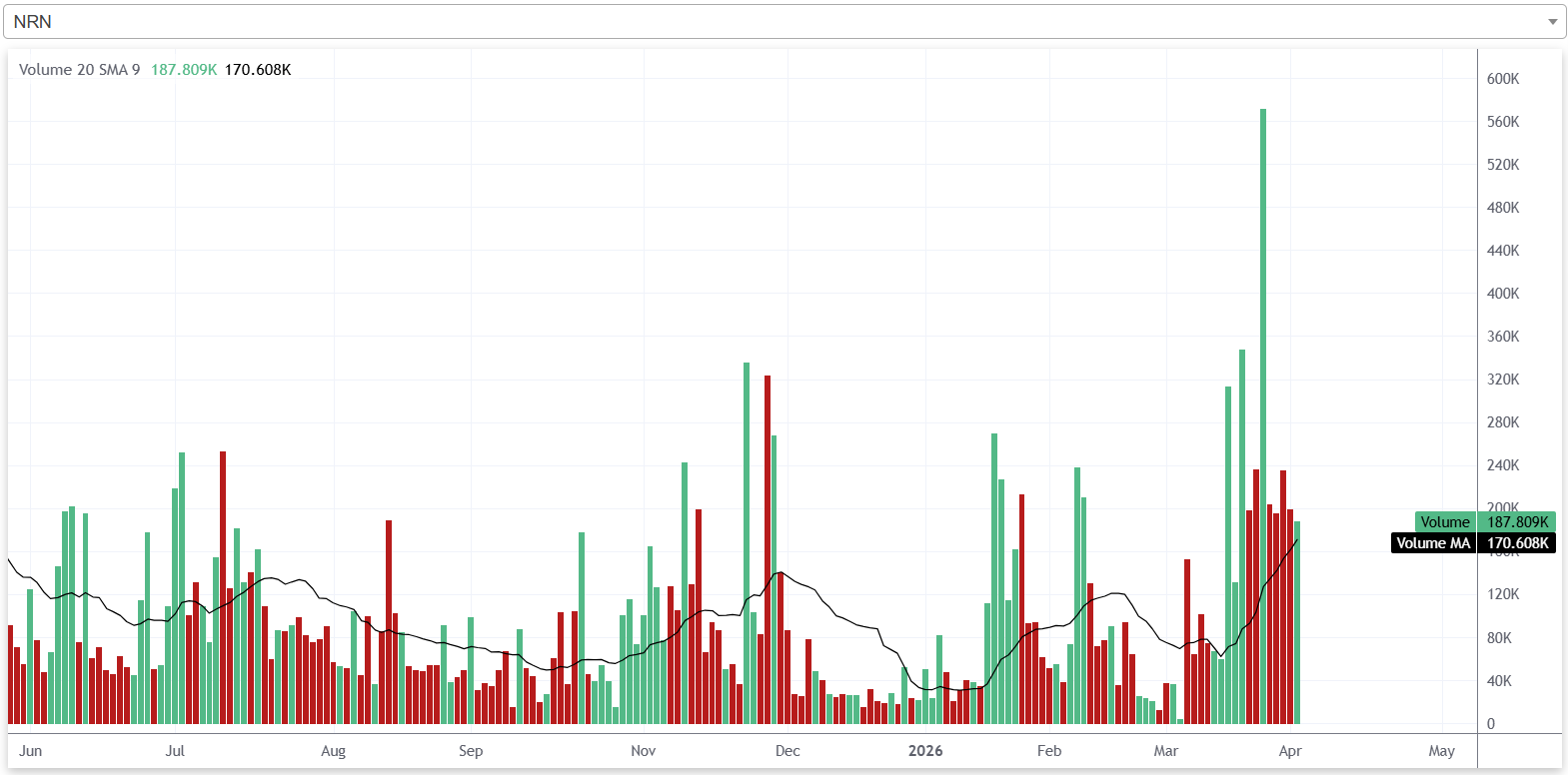 यस साता कम्पनीको भोल्यूम बलियो रहेको छ। यस साताका हरेक कारोबार दिन कम्पनीको २० दिने औषत भोल्यूमभन्दा बढीको शेयर कारोबार भइरहेको छ। मूल्यले सिमेट्रिकल ट्रयांगल बनाइरहेको अवस्थामा यस्तो उच्च भोल्यूम आउनुले ठूला लगानीकर्ता बजारमा प्रवेश गरेको संकेत गर्दछ।